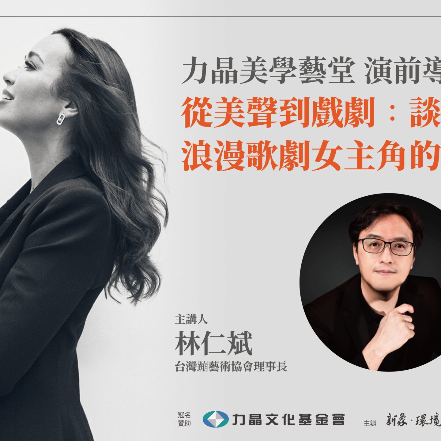 本場演前導聆將聚焦當代最具代表性的浪漫女高音之娜汀・席雅拉。從美聲傳統的技術基礎出發,探討她如何在純粹的聲音線條之上,逐步走向更具戲劇深度的角色塑造。透過實際演出片段,解析其聲音運用、詠嘆調處理與舞台