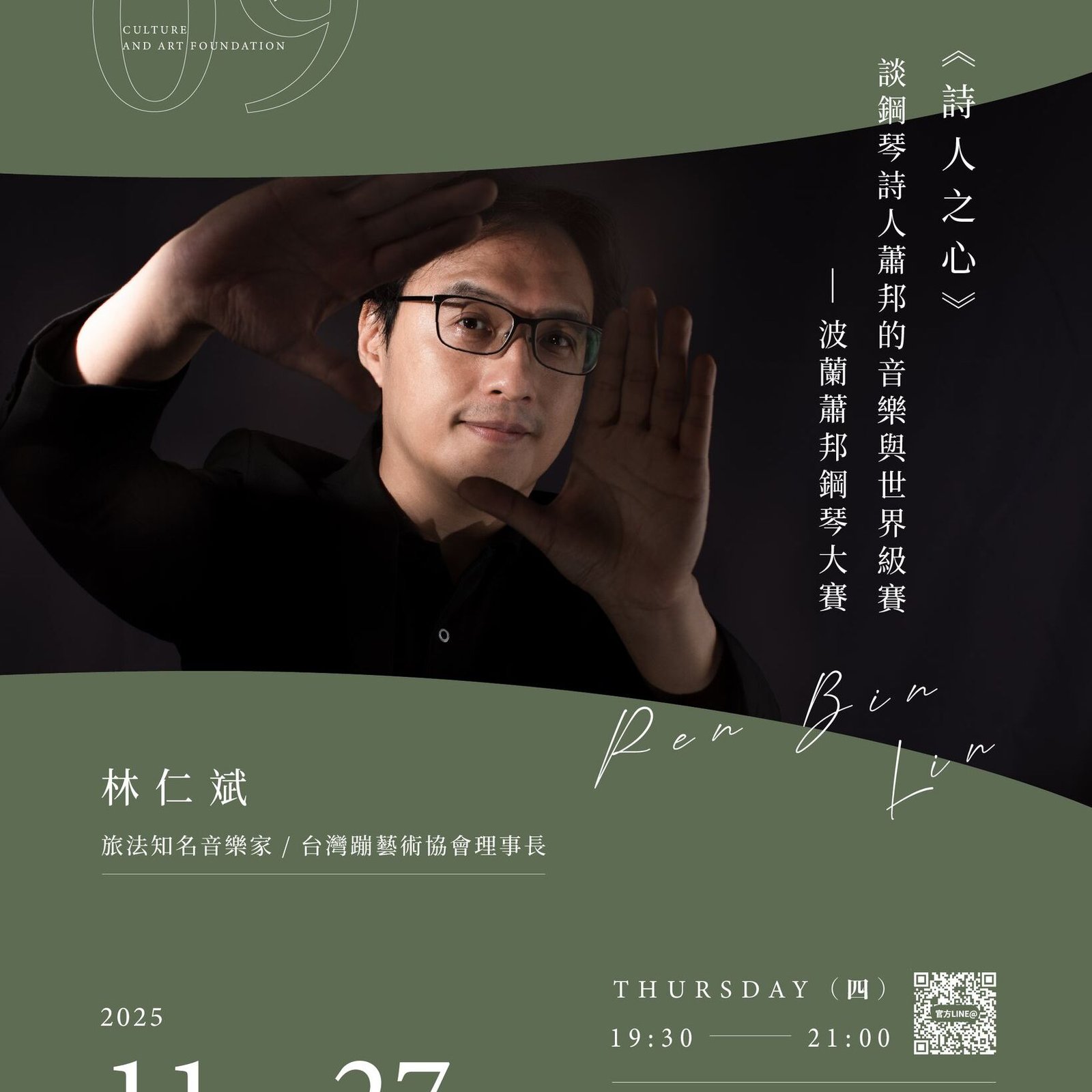 蕭邦將民族情感、詩意思維與鋼琴技法融為一體:從夜曲的呢喃、馬厝卡的步伐、到敘事曲的豐富故事篇章,蕭邦的音樂既浪漫又熾烈,既屬個人私語,也映照出十九世紀浪漫主義的精神風貌。在這場講座中,將以鋼琴詩人蕭邦