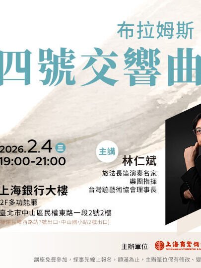 【BON音樂】蹦藝術X上海商業儲蓄銀行「豐富人生 X 音樂天地」公益講座— 林仁斌/布拉姆斯《第四號交響曲》