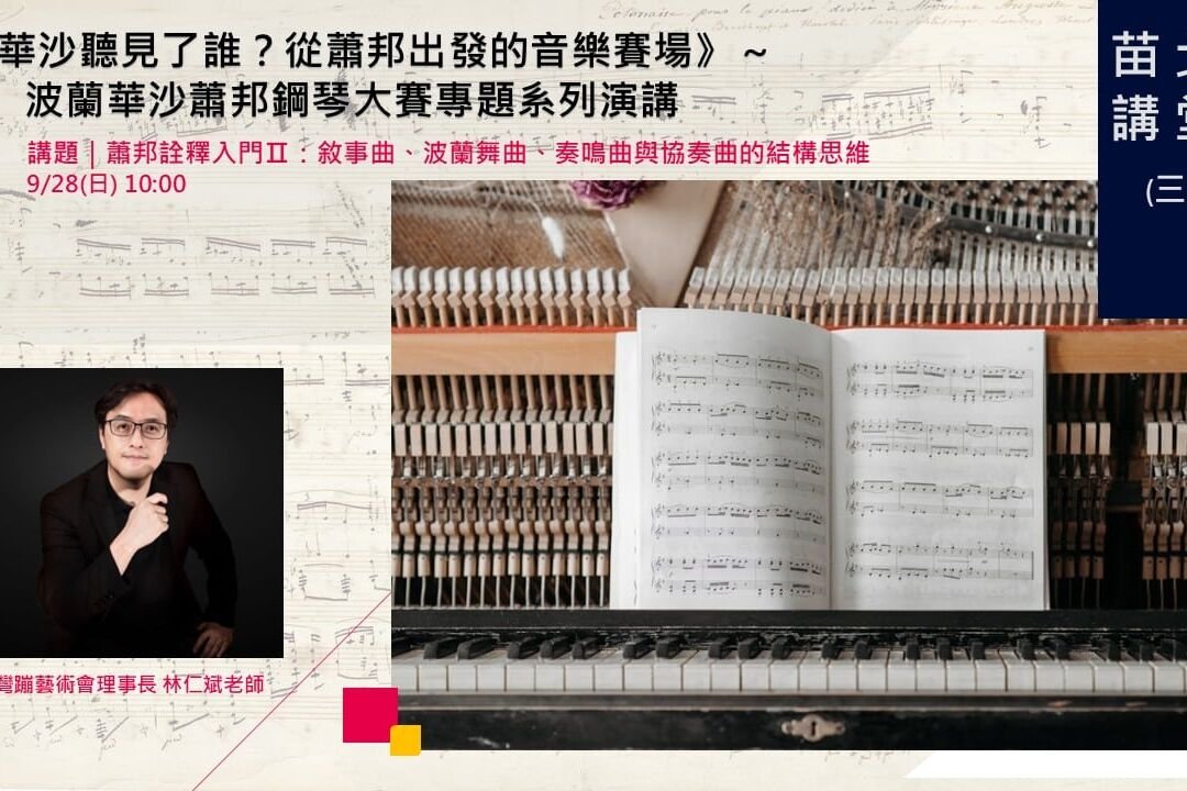 【苗北講堂】2025下半年系列:波蘭華沙蕭邦鋼琴大賽專題系列演講(三)蕭邦詮釋入門Ⅱ:敘事曲、波蘭舞曲、奏鳴曲與協奏曲的結構思維