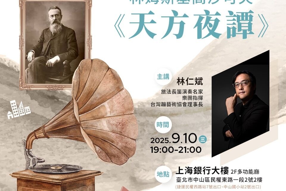 千夜萬夜的傳說,在音符中悄然展開;一段段迷人的故事,不在書頁裡,而在旋律中閃閃發光。在這場講座中,我們邀請林仁斌老師,帶您走入俄國作曲大師林姆斯基-高沙可夫筆下的傳奇鉅作——《天方夜譚》。這部作品靈感來自阿拉伯的《一千零一夜》,曲中以神秘女主角雪赫拉莎德為敘事者,用旋律訴說愛與智