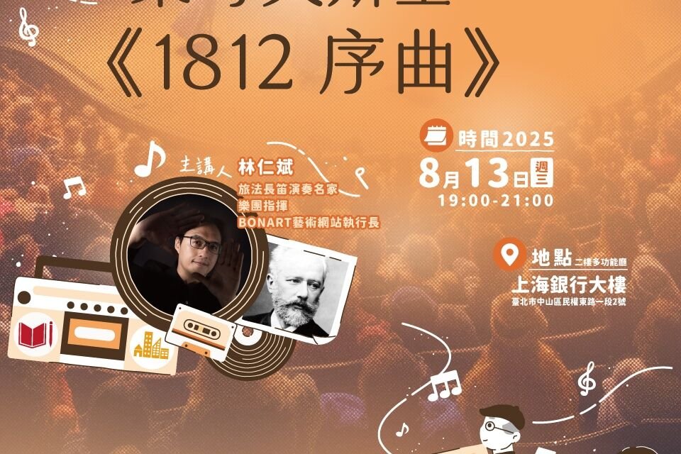 磅礡的樂音背後,蘊藏著怎樣的歷史記憶與作曲家的內在心境? 本場講座邀請旅法長笛演奏名家林仁斌老師,現任台灣蹦藝術協會理事長,帶領我們深入柴可夫斯基的經典鉅作《1812序曲》。…