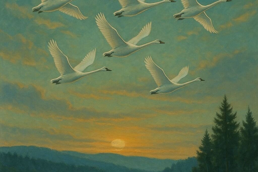 第五號交響曲並不屬於標題性音樂更像是作曲家身處於世界變動,在戰爭、孤寂與民族情感動盪中,重新確立自己與治個世界的關係。西貝流士在日記中曾寫道:「今天我看見了十六隻天鵝飛過,這是一個神聖的時刻。」~那群停留在西貝流士心中的天鵝,後來在第五號交響曲裡,化為終樂章法國號的宏偉主題,象徵
