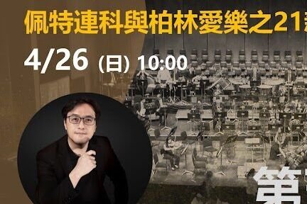佩特連科上任後,以細膩、專注且高度組織化的排練方式,逐步塑造出柏林愛樂更具現代感之演奏效果。本講座將從曲目策畫、音色平衡與排練文化等面向,分析他與前任拉圖在樂團風格上的差異,並討論柏林愛樂自後疫情時代起,如何繼續成為龍頭,呈現出全球最具代表性的頂尖樂團之聲。…