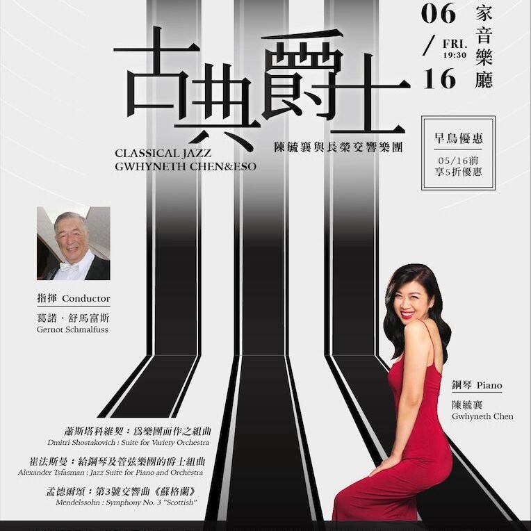 長榮交響樂團《古典爵士》陳毓襄與長榮交響樂團音樂會,音樂會將以蕭斯塔科維契:為樂團而作之組曲揭開序幕; 鋼琴家陳毓襄接續演奏崔法斯曼:給鋼琴及管弦樂團的爵士組曲…
