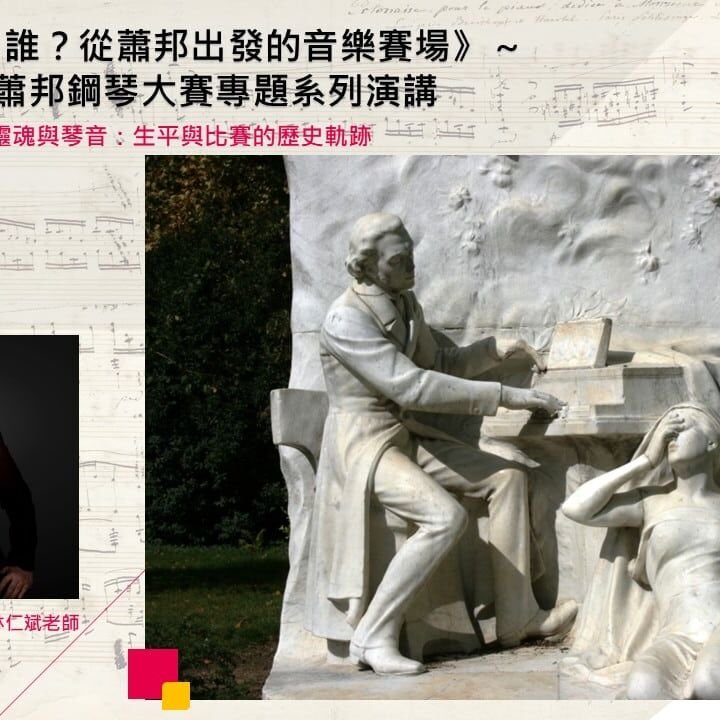 本場講座林仁斌老師將為大家介紹蕭邦的生命脈絡與創作歷程,從華沙到巴黎,從民族情感到浪漫抒情語彙,探討其音樂語言的形成背景。並介紹波蘭蕭邦鋼琴大賽自1927年創辦以來的歷史發展,涵蓋評審制度、曲目演變、
