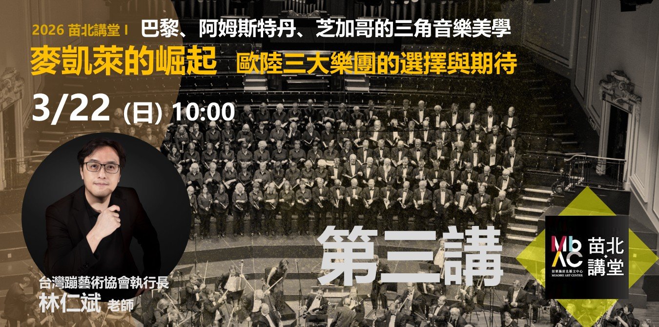 【苗北講堂】2026上半年:縱橫管弦 III – 麥凱萊的崛起:歐陸三大樂團的選擇與期待