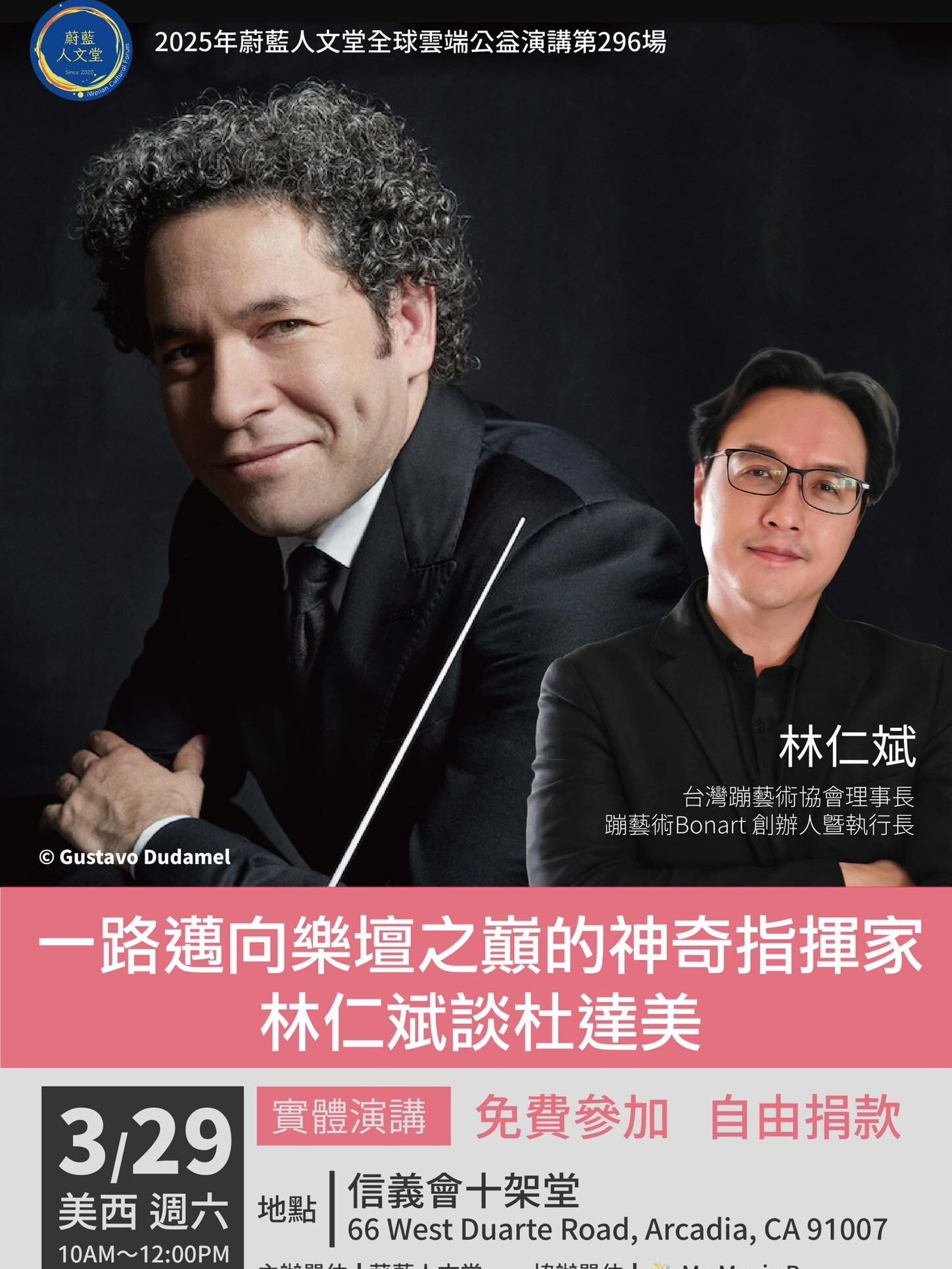 杜達美出身委內瑞拉,具備教育與社會參與並行的文化背景。他在洛杉磯愛樂帶動跨文化合作,使樂團展現更開放的國際視野;未來執掌紐約愛樂,他將面對歷史長久、組織龐大的樂團所需的轉型挑戰。本講座將解析他在三個不