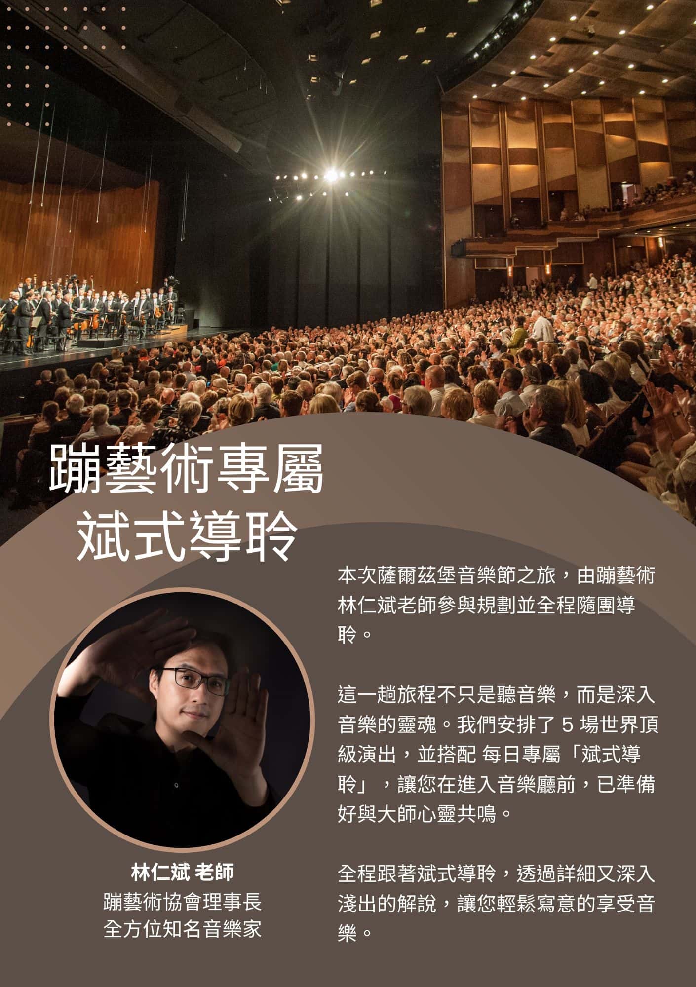 無論是追求極致聽感資深愛樂者、渴望浪漫藝術薰陶的伴侶,或是熱愛德奧文化的人文探索者,蹦藝術樂旅皆能滿足您對頂級旅行的想像。由專業講師全程隨行,提供深度導聆服務,確保旅程不只是走馬看花,而是每一場演出都能深入靈魂。