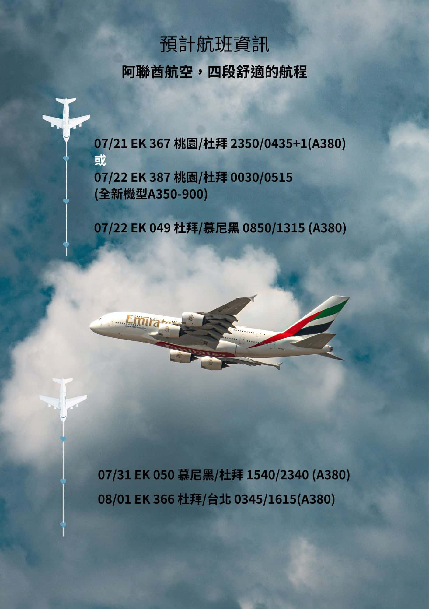 預計航班:EK 366 杜拜/台北 0345/1615