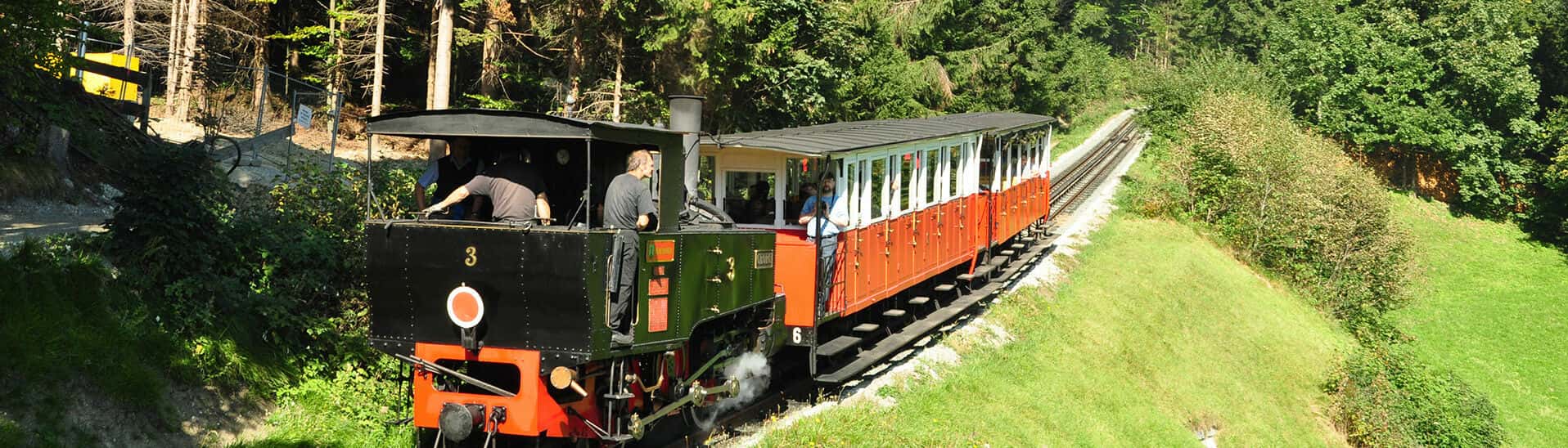 搭乘自1889年營運至今的古董蒸汽火車。伴隨著規律的汽笛聲與白色蒸汽,火車將在45分鐘的旅程中緩緩攀升,這是一趟懷舊且浪漫的旅程,讓您飽覽阿爾卑斯山與湖泊的絕美全景。 預計下午行程