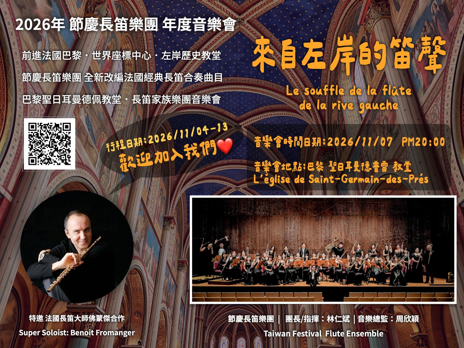 節慶長笛樂團《來自左岸的笛聲》2026′ 巴黎聖日耳曼德普雷教堂音樂會 重磅計劃來了: